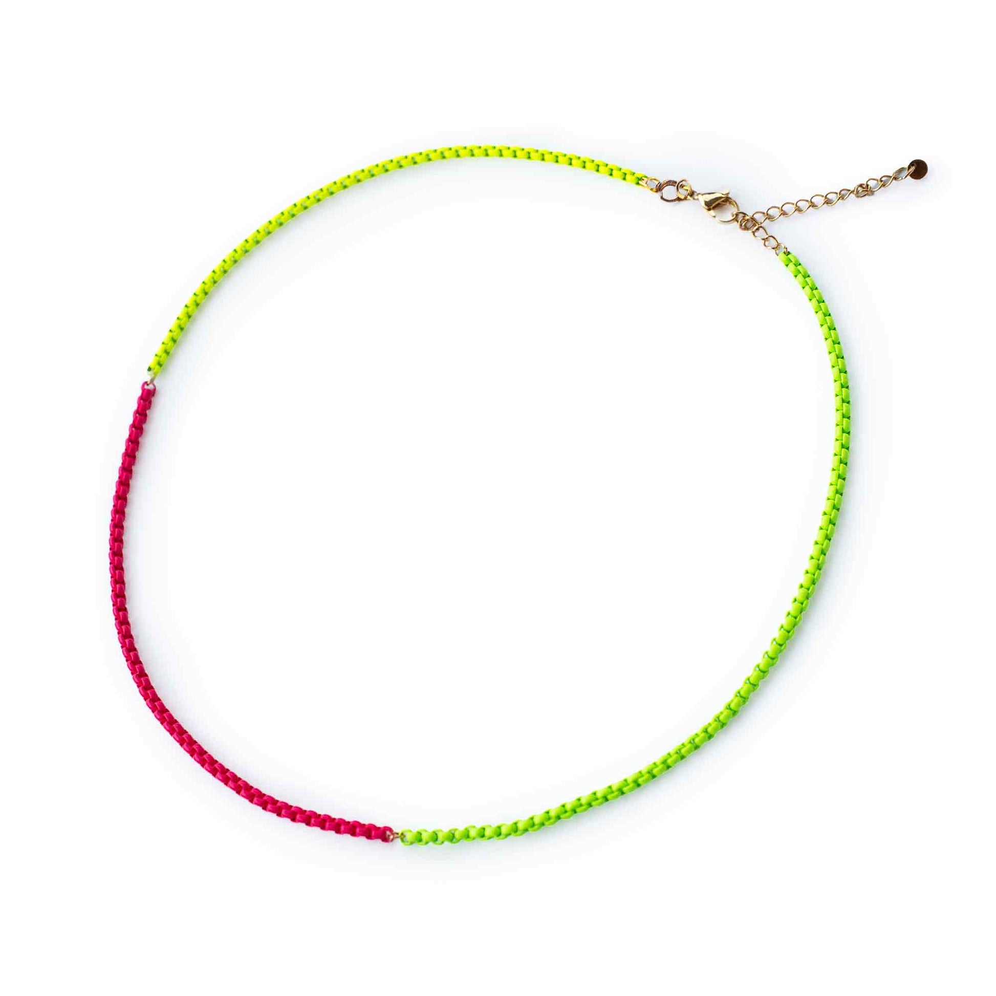Ich bin eine hübsche Kette aus Eisen und in tollen, kunterbunten Farben. Mich gibt in deiner Wunschgröße und die Farben kannst du selbst zusammenstellen. Der Verschluss ist aus Edelstahl und durch das Kettchen ist die Kette um 5cm größenverstellbar.