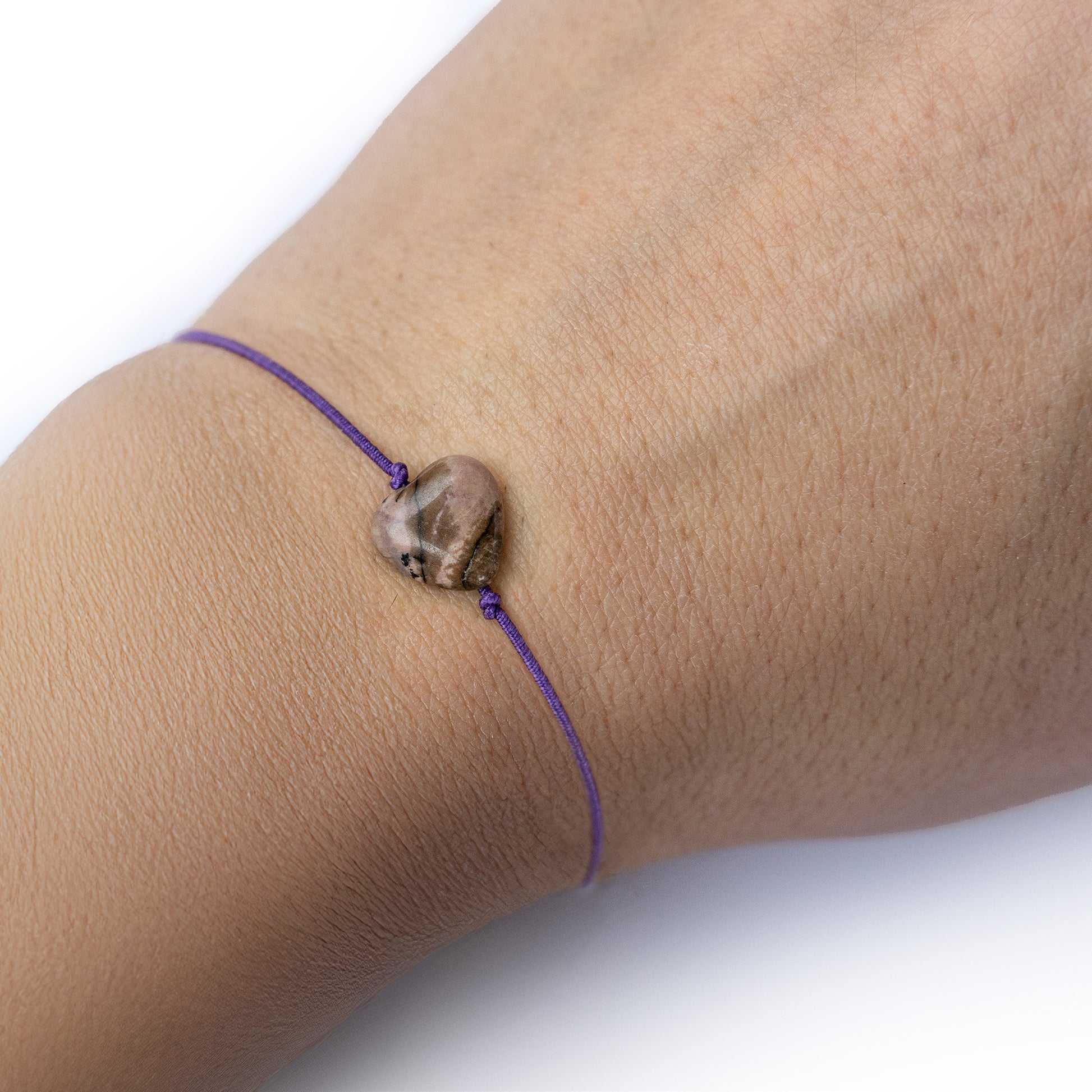 elastisches Gummiband, Herz aus Naturstein (Rhodonit)