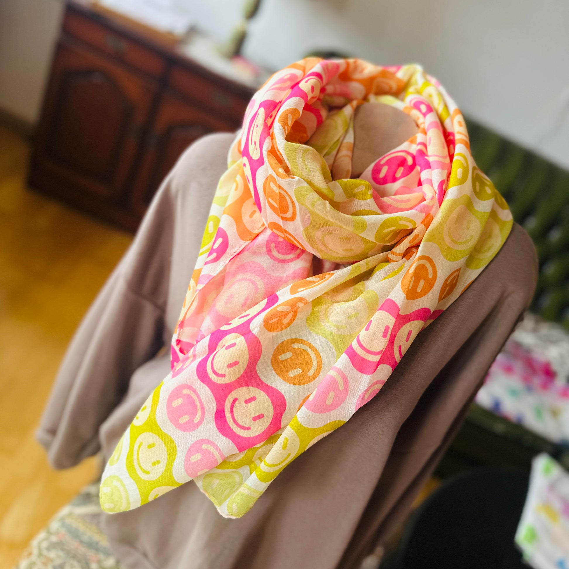 Leichtes XXL-TUCH "Smilie" (rosa-grün-pink)