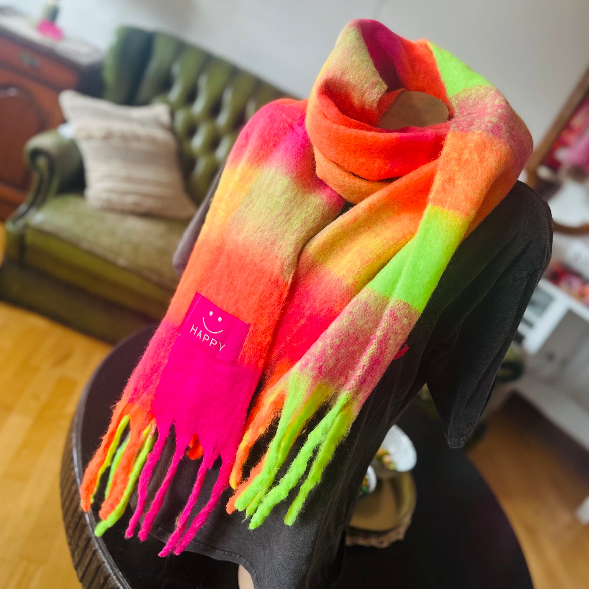 Dieser Schal ist nicht nur ein toller Eye-Catcher durch seine knalligen Farben, er ist auch einfach angenehm weich und kuschelig und verleiht jedem Outfit das gewisse Extra.